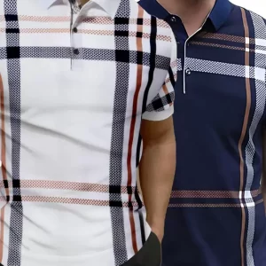 Pack of 2 Men Checkered Polo Neck Cotton Blend Dark Blue, White T-Shirt