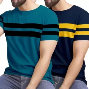Pack of 2 Men Striped Round Neck Cotton Blend Dark Blue T-Shirt