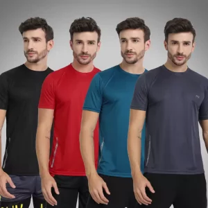 Pack of 4 Men Solid Round Neck Polyester Multicolor T-Shirt